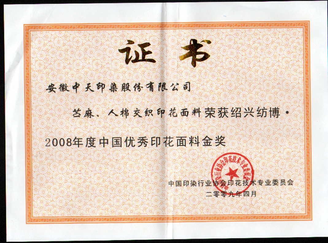 苧麻、人棉交織印花面料榮獲中國優(yōu)秀印花面料金獎