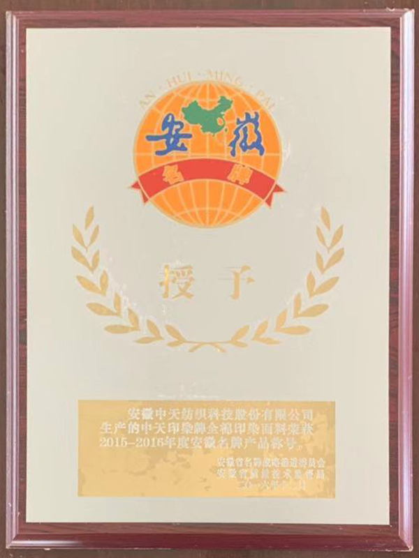 安徽省名牌產(chǎn)品稱號